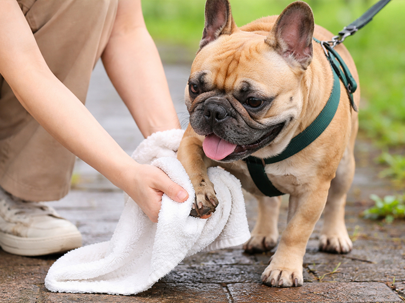 足先やお腹周りなど、汚れやすい部分は軽く拭くだけでも効果があります。