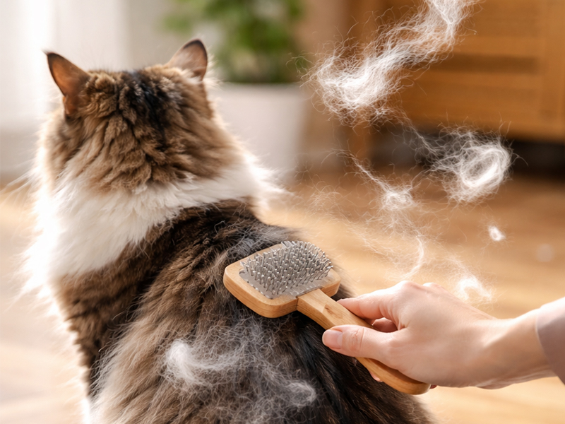 外出後や帰宅後にブラッシングすることで、被毛についた花粉を落とすことができます。